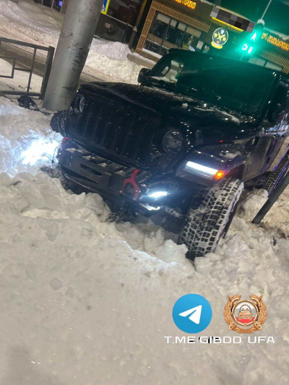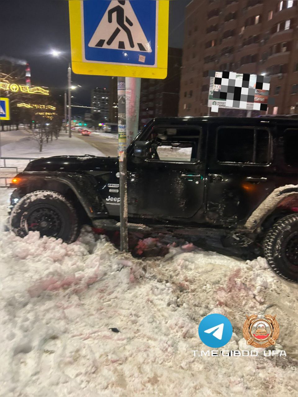 Вечером 1 января на улице Цюрупы в Уфе водитель Jeep Wrangler не справился с управлением. Машина врезалась в электроопору справа по ходу движения. За рулем находился 37-летний мужчина.