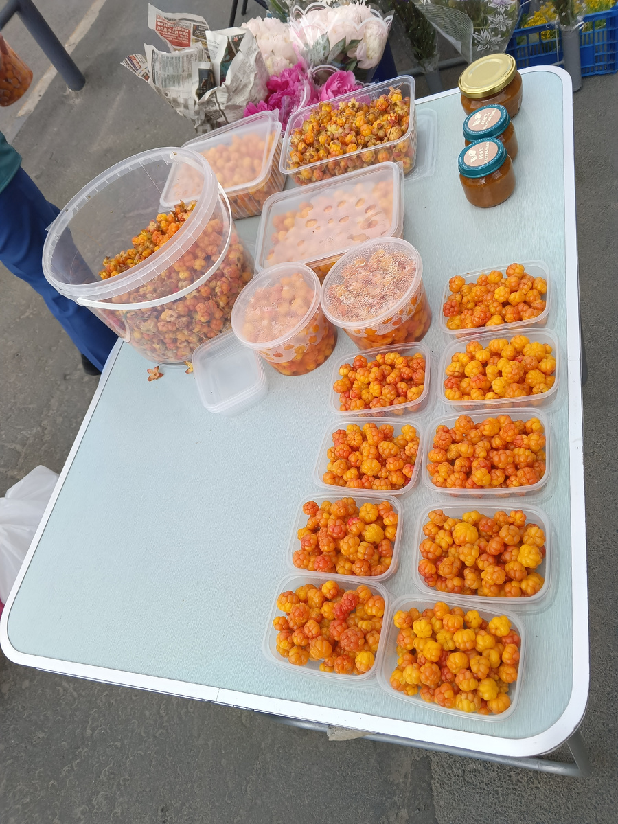 На Центральном рынке Петрозаводска появляются небольшие контейнеры с ягодой, и их цена удивляет. За 100 грамм морошки просят от 300 рублей, что вызывает недоумение у покупателей. Однако эта ягода не просто необычна — она непросто достает и трудоемка в сборе. Так, сбор морошки требует серьезной физической подготовки и знания местности, поскольку большинство болот находятся далеко от основных дорог.