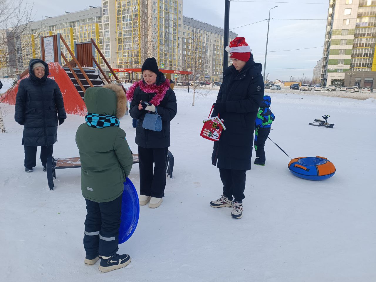 Они дарили мандарины и конфеты детям за стихотворения и ответы на загадки.