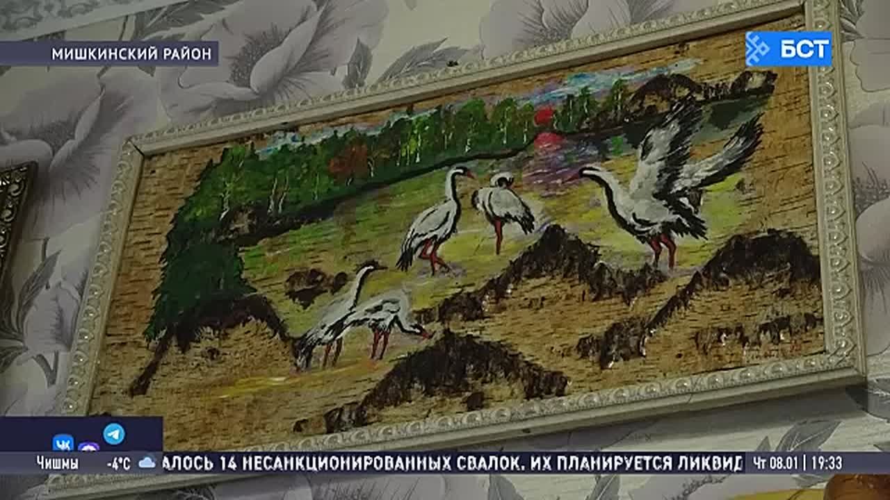 Шедевры из коры дерева. Житель деревни Староарзаматово Мишкинского района создаёт картины на бересте. В своих работах Анатолий Тимуршин старается по максимуму сохранить то, что уже нарисовано природой.