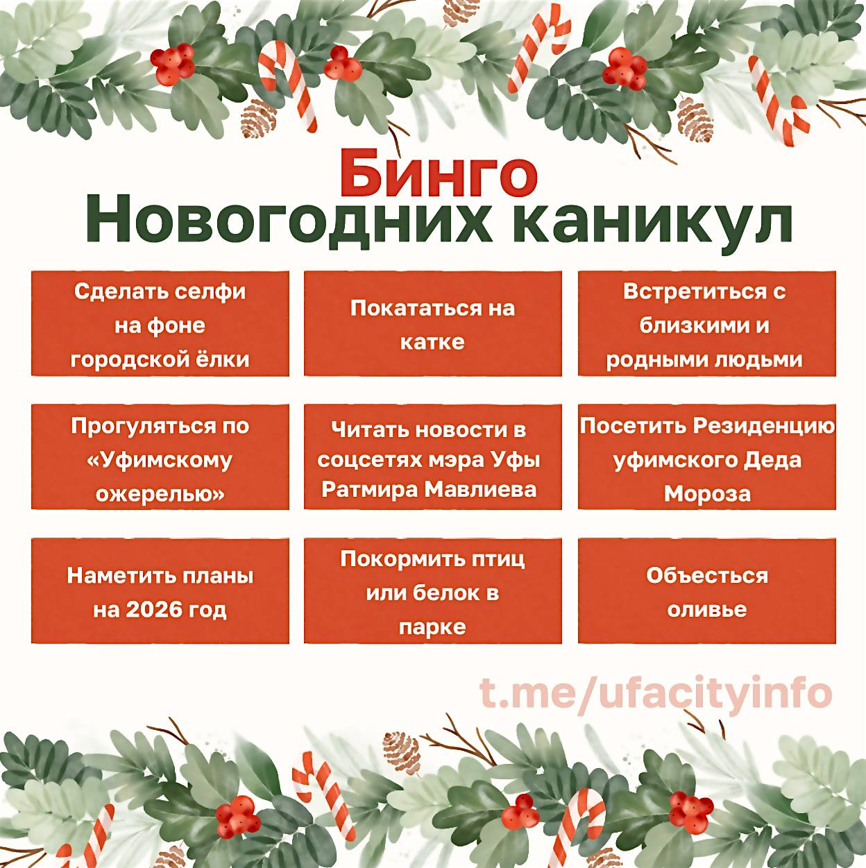 Новогодние каникулы почти позади - самое время подвести весёлые итоги! Мы подготовили для вас праздничное бинго: вспомните, что уже успели сделать, а что еще можно успеть