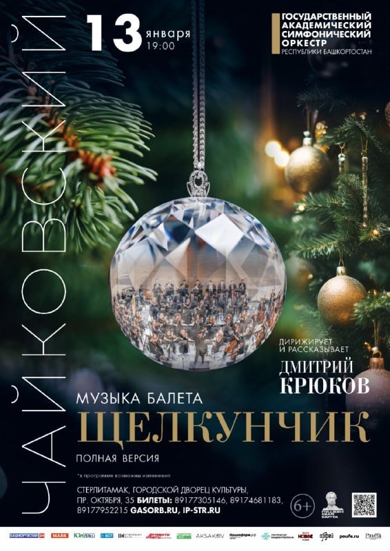 13 января в 19:00 в Городском дворце культуры прозвучит музыка балета «Щелкунчик». Полную версию представит Государственный академический симфонический оркестр Республики Башкортостан.
