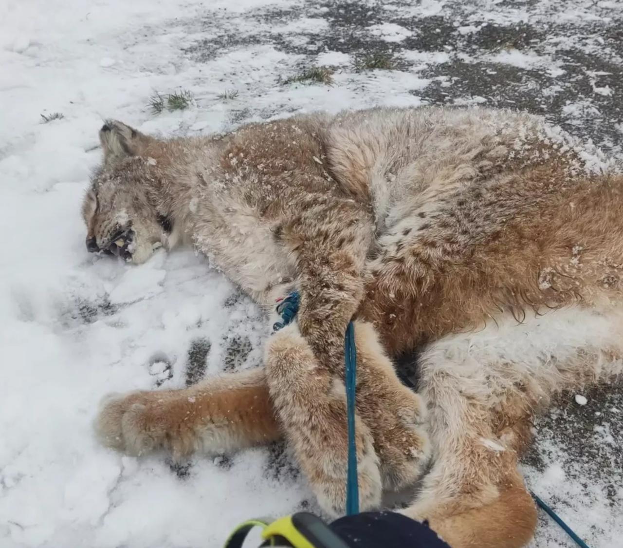 В итоге вышедшую из леса рысь удалось поймать, но она быстро умерла.