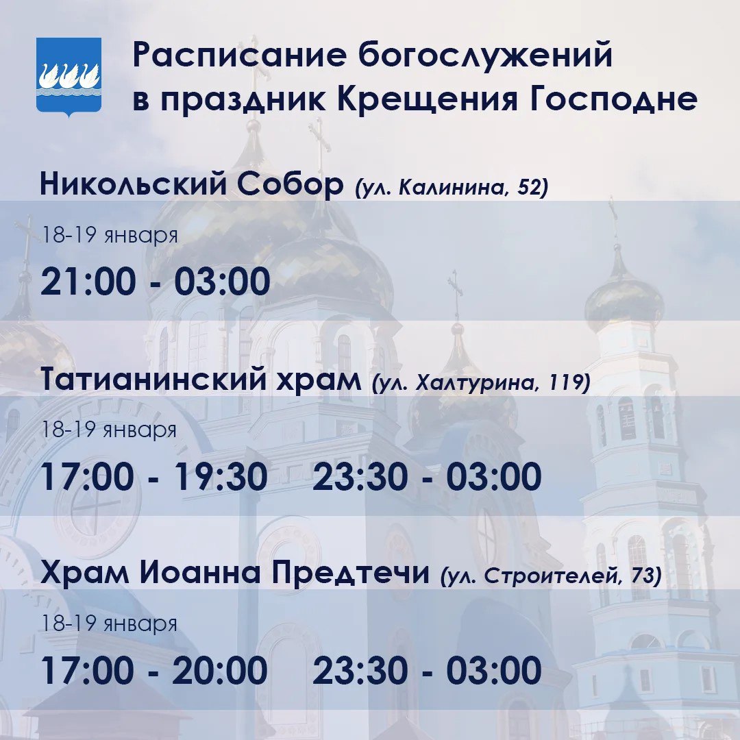 Расписание богослужений на Крещение Господне