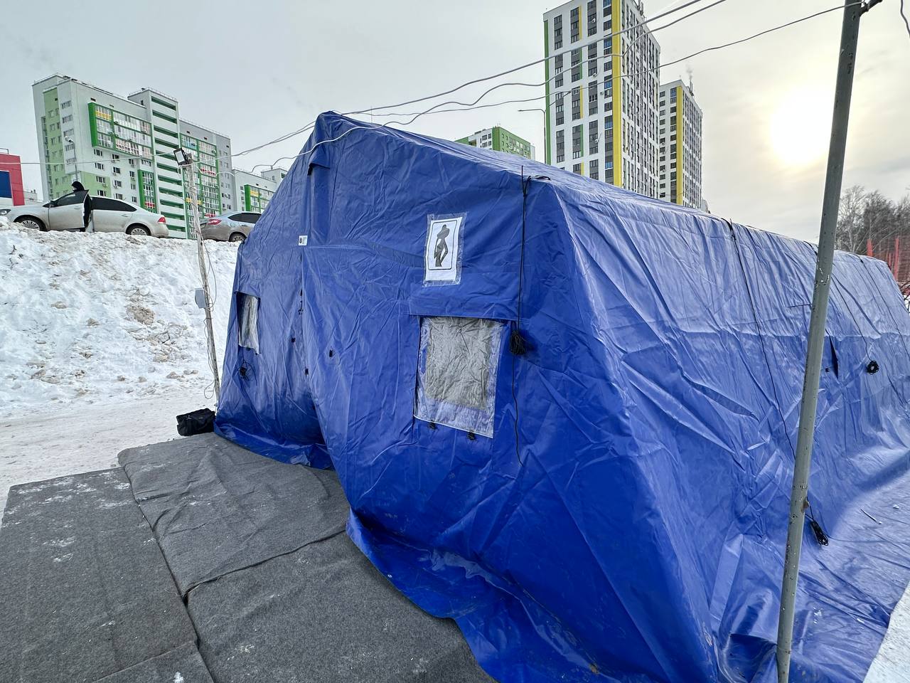 Здесь установлена теплая палатка для переодевания, оборудованы удобные дорожки к купели, смонтированы сходни для безопасного погружения в воду.