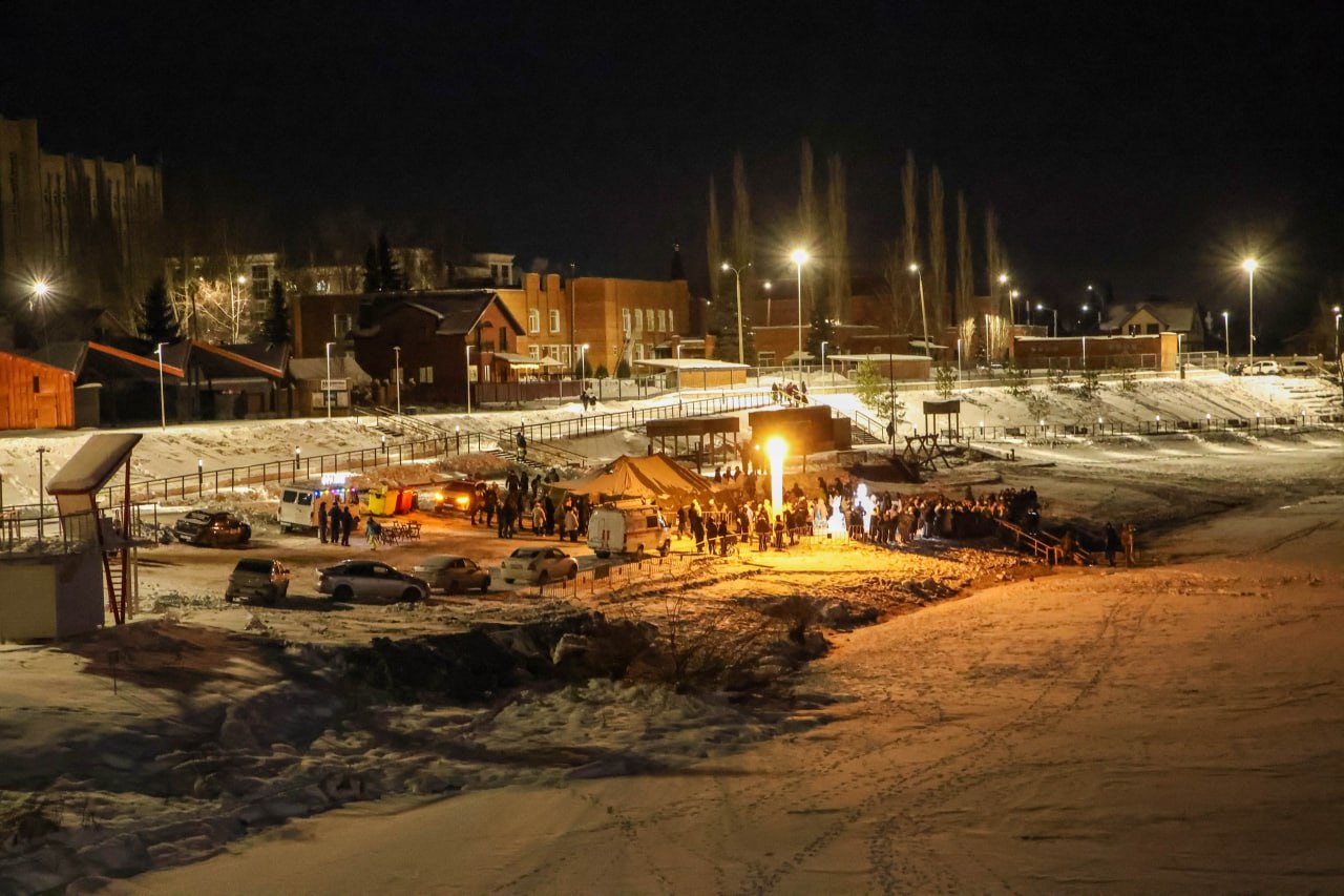 В Стерлитамаке в ночь с 18 на 19 января местом для крещенских омовений стал городской пляж на реке Ашкадар. Здесь были созданы все необходимые условия: оборудована безопасная купель с удобными сходнями и подходами, установлены специальные ограждения и обогреваемые палатки для переодевания. Также работал передвижной ларёк с выпечкой и горячим чаем. Желающие могли сделать памятные фотографии у ледяной скульптурной композиции в виде креста и фигур ангелов. Безопасность на пляже обеспечивали дежурные бригады спасателей, медицинские работники и сотрудники Росгвардии.