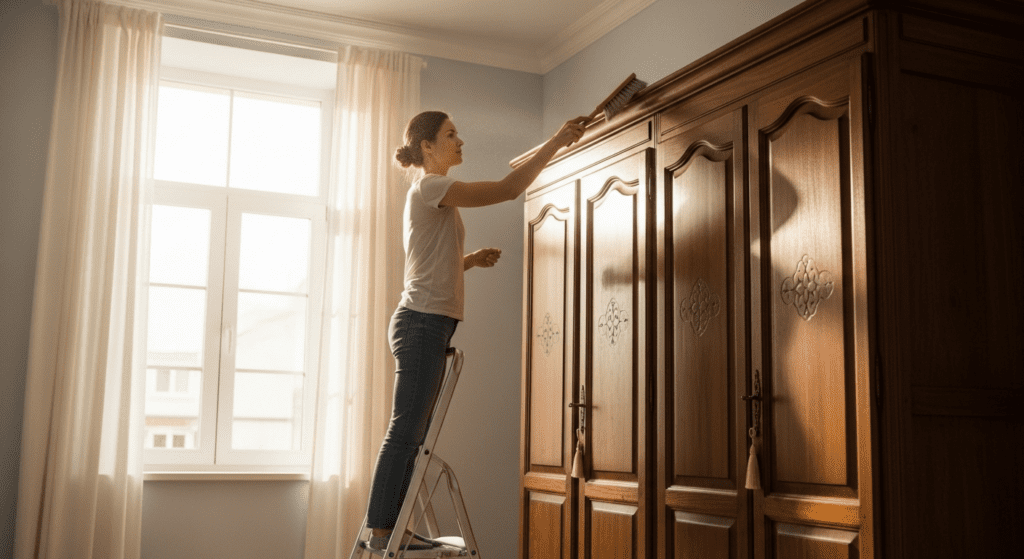 Чтобы процесс уборки был максимально эффективным, стоит придерживаться нескольких простых шагов: сначала удалите все вещи, затем пылесошите и протирайте поверхности с помощью мягкой тряпки, избегая сильного намокания. Зеркальные и глянцевые фасады нужно очищать с помощью специальных средств, чтобы избежать разводов.