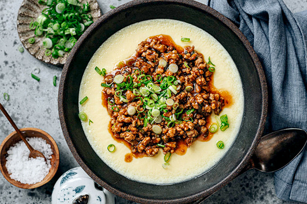 Чжэн Жуй Дань, или egg custard, как его называют в Китае, — это классика кантонской кухни. В этом регионе акцент всегда ставится на лёгкость и баланс вкусов. Подача с фаршем делает его более сытным, что особенно любят местные семьи.