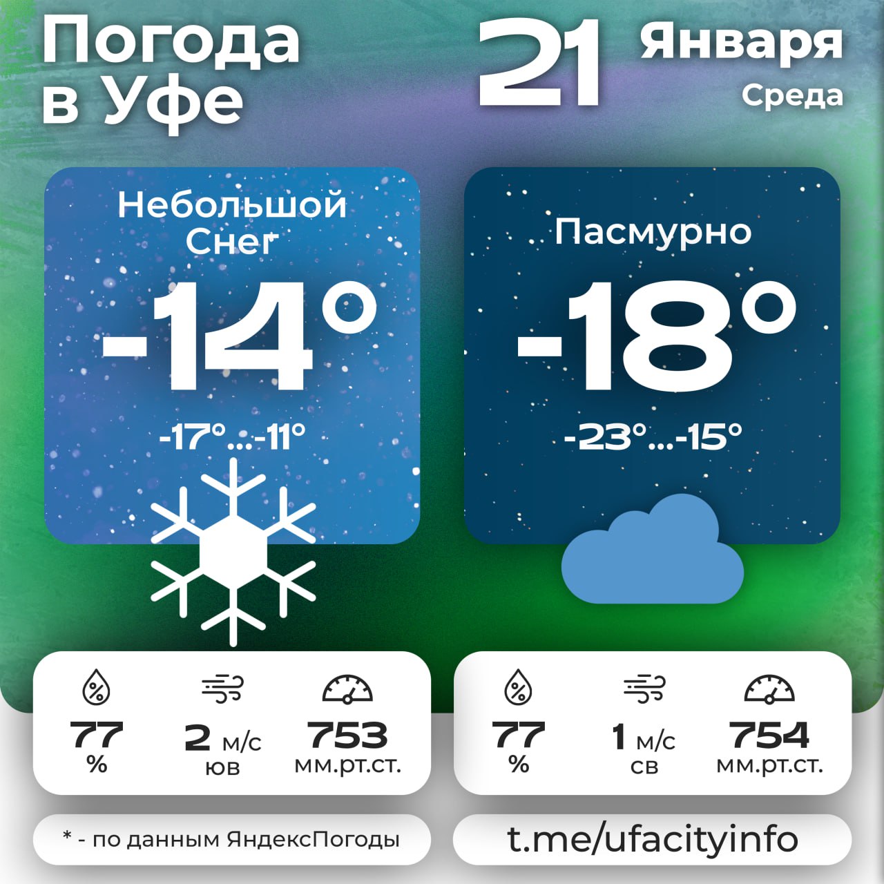 Небольшой снег, днем по югу до умеренного.Ветер восточный, северо-восточный 5-10 м/с.Температура воздуха ночью -13,-18°, при прояснениях до -23°, днем -8,-13°.На отдельных участках автодорог ухудшение видимости в снеге до 1-2 км...