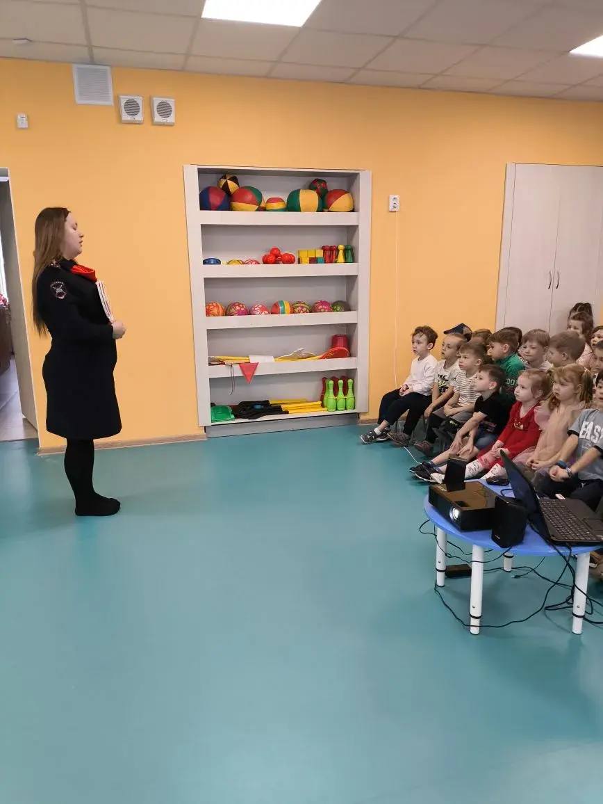 В рамках встречи дошкольники изучают пешеходные и пассажирские правила а также дорожные знаки и сигналы светофора.