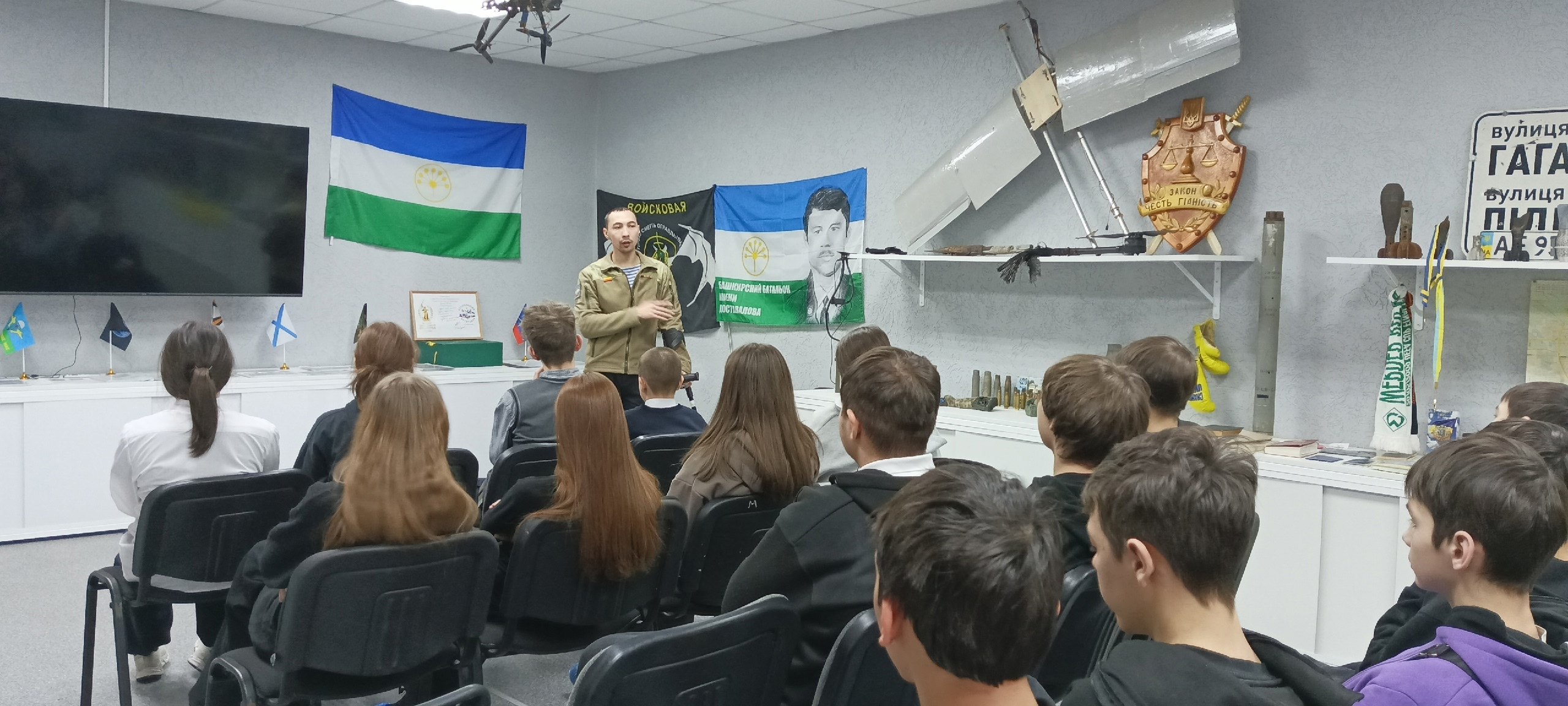 На днях музей посетили учащиеся школы-интерната №1. Представитель Ассоциации ветеранов СВО Равиль Казангулов рассказал школьникам о своей службе, о героях СВО, о том, как город помогает нашим героям.