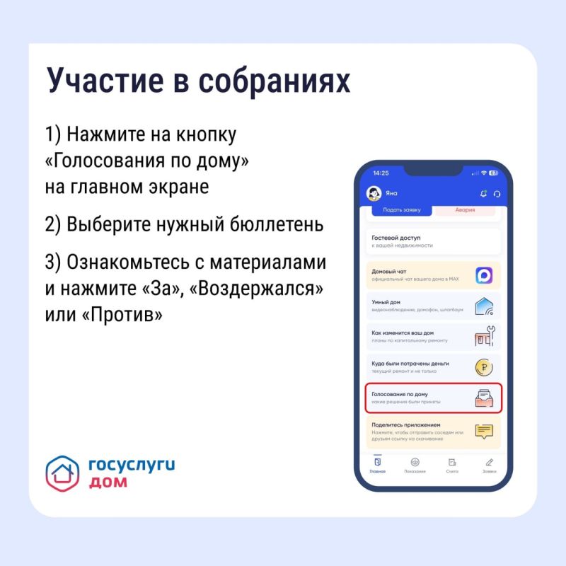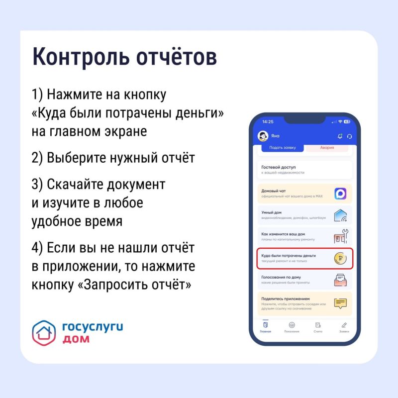Изучайте подробные отчёты управляющей компании, оплачивайте счета и контролируйте расходы, голосуйте по важным решениям онлайн и направляйте заявки — ваше мнение основа для качественной работы управляющей организации.