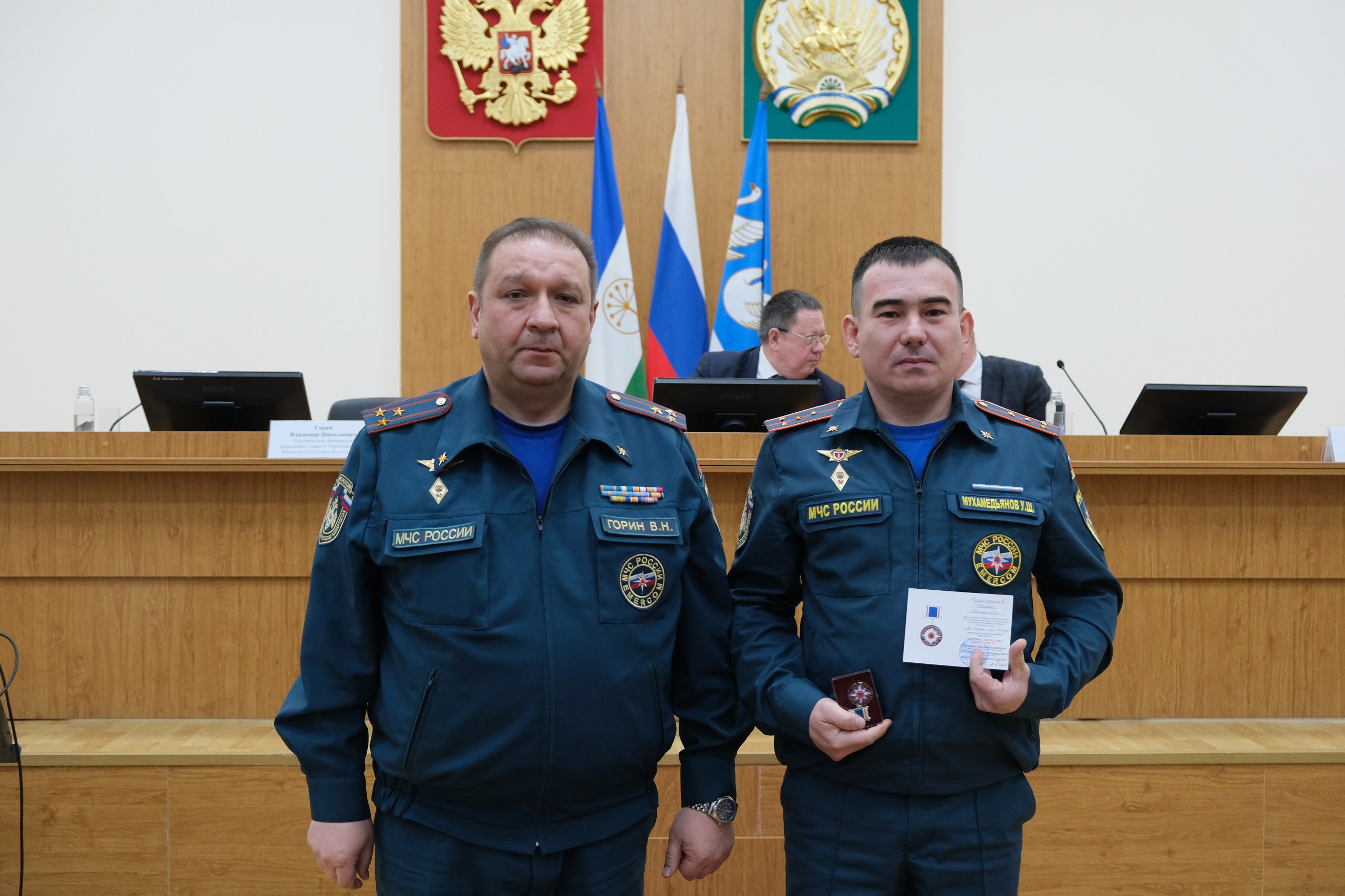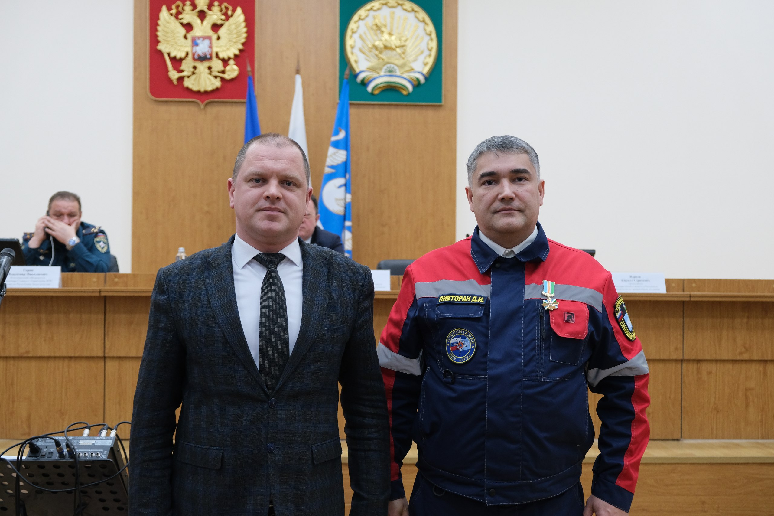 Завершилось совещание награждением. Артур Гафаров, Кирилл Первов и Владимир Горин вручили благодарственные письма и почетные грамоты специалистам аварийно-спасательного звена.