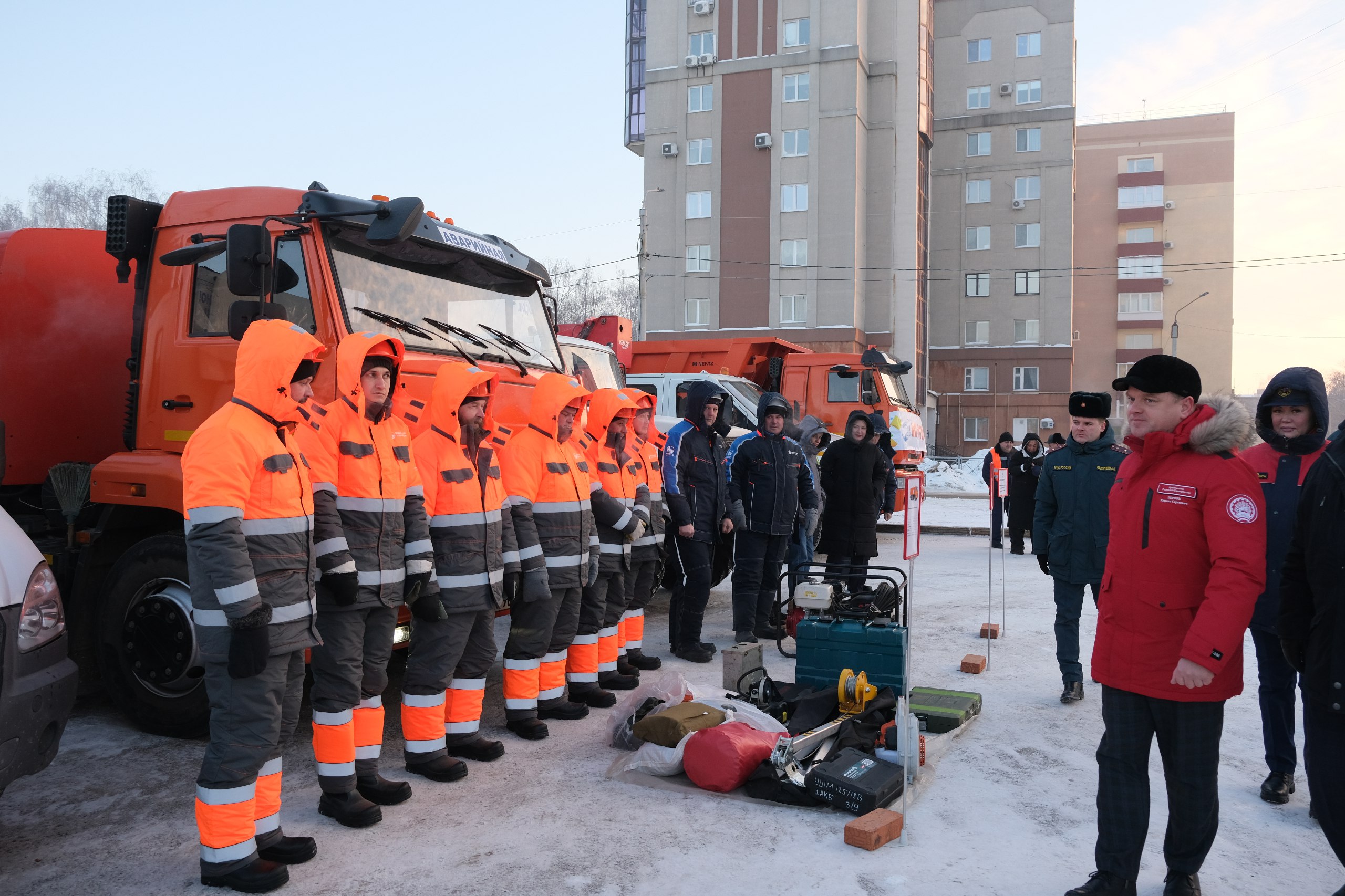 Подвели сегодня в администрации города. Сначала на площади перед Городским дворцом культуры прошёл смотр сил и средств аварийно-спасательного звена города.