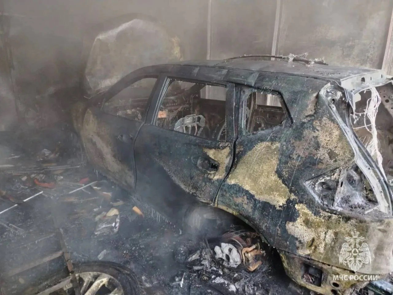 В МЧС Башкортостана поступило сообщение о пожаре по улице Мелеузовская в Уфе. Пламя охватило автомобиль Nissan X-Trail, который находился в гараже.