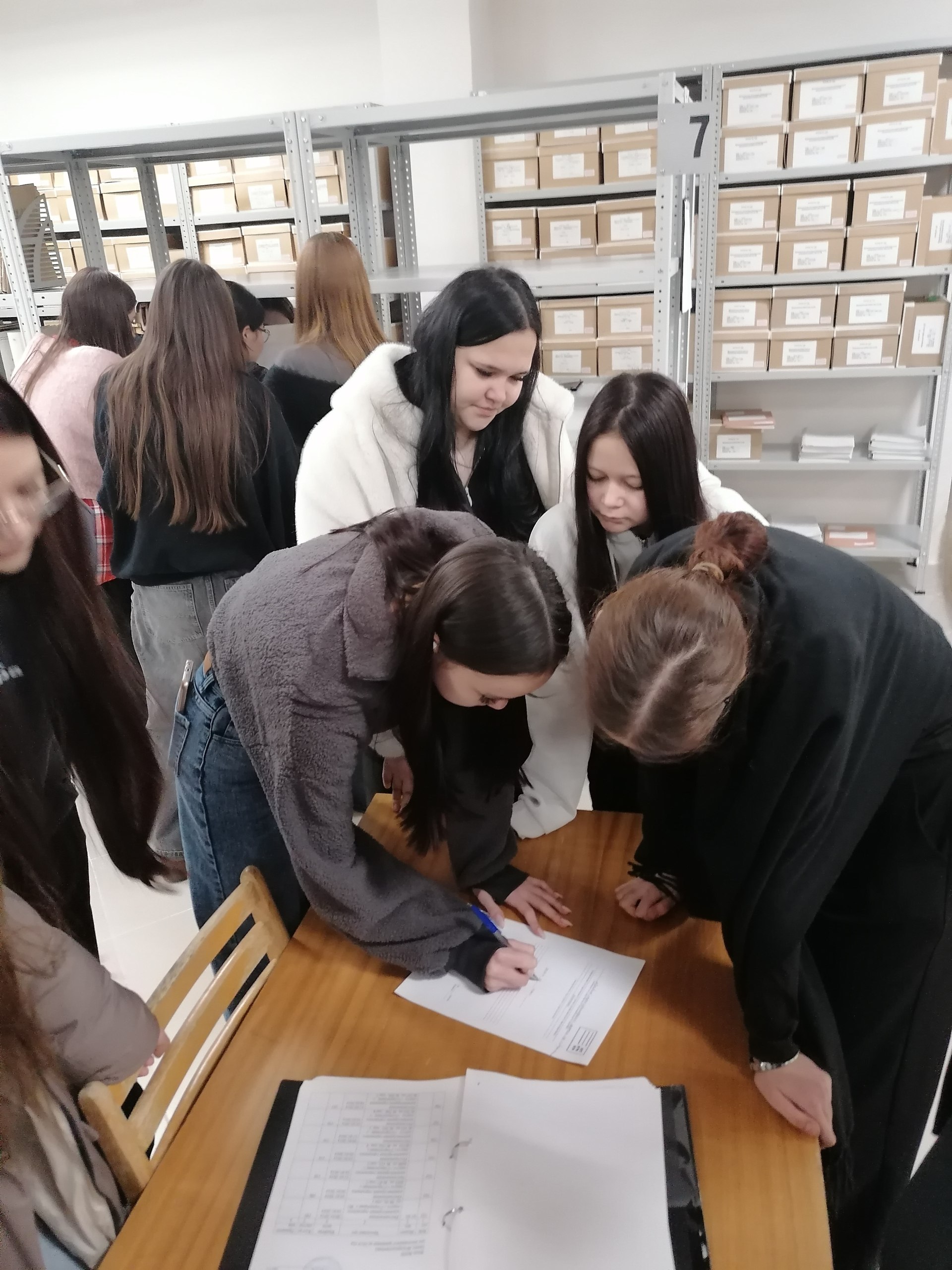 В рамках экскурсии студенты ознакомились с широким спектром исторических источников — документами личного происхождения, фотодокументацией и материалами периода Великой Отечественной войны. Особое внимание уделялось порядку хранения архивных документов, составу архивных фондов, процессам оцифровки материалов и стандартам оформления обложек дел. Также была проведена экскурсия по архивохранилищам, где хранятся дела постоянного срока хранения и документация по личному составу.