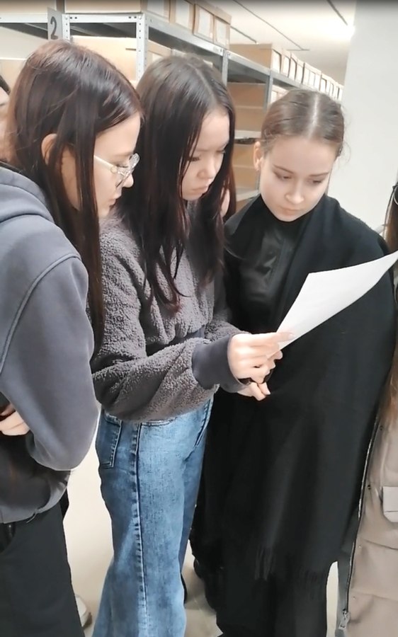 Практическая часть включала квест, в котором участники решали профессионально ориентированные задания: ориентировались в архивохранилищах, искали необходимые документы, анализировали и сопоставляли архивные данные, отрабатывали навыки подготовки архивной справки. Это позволило студента