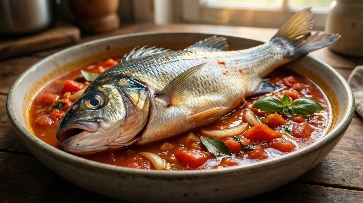 В обычности таится вкус, который согревает. Рыба, томленная в густом томатном соусе с зеленью и чесноком, превращается в ощущение домашнего тепла и простоты, которое легко повторить в будний вечер.