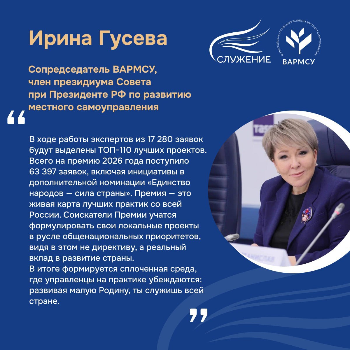 Интерес представителей муниципалитетов к участию ежегодно растет. На премию 2026 года поступило более 63 тысяч заявок.