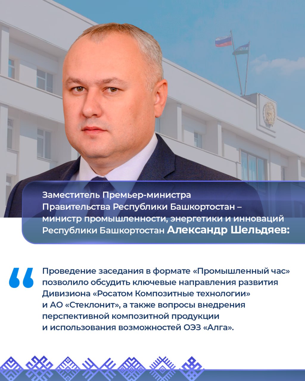 Заместитель Премьер-министра Правительства Республики Башкортостан министр промышленности, энергетики и инноваций Республики Башкортостан Александр Шельдяев посетил АО Стеклонит, где состоялось заседание в формате Промышленный час.
