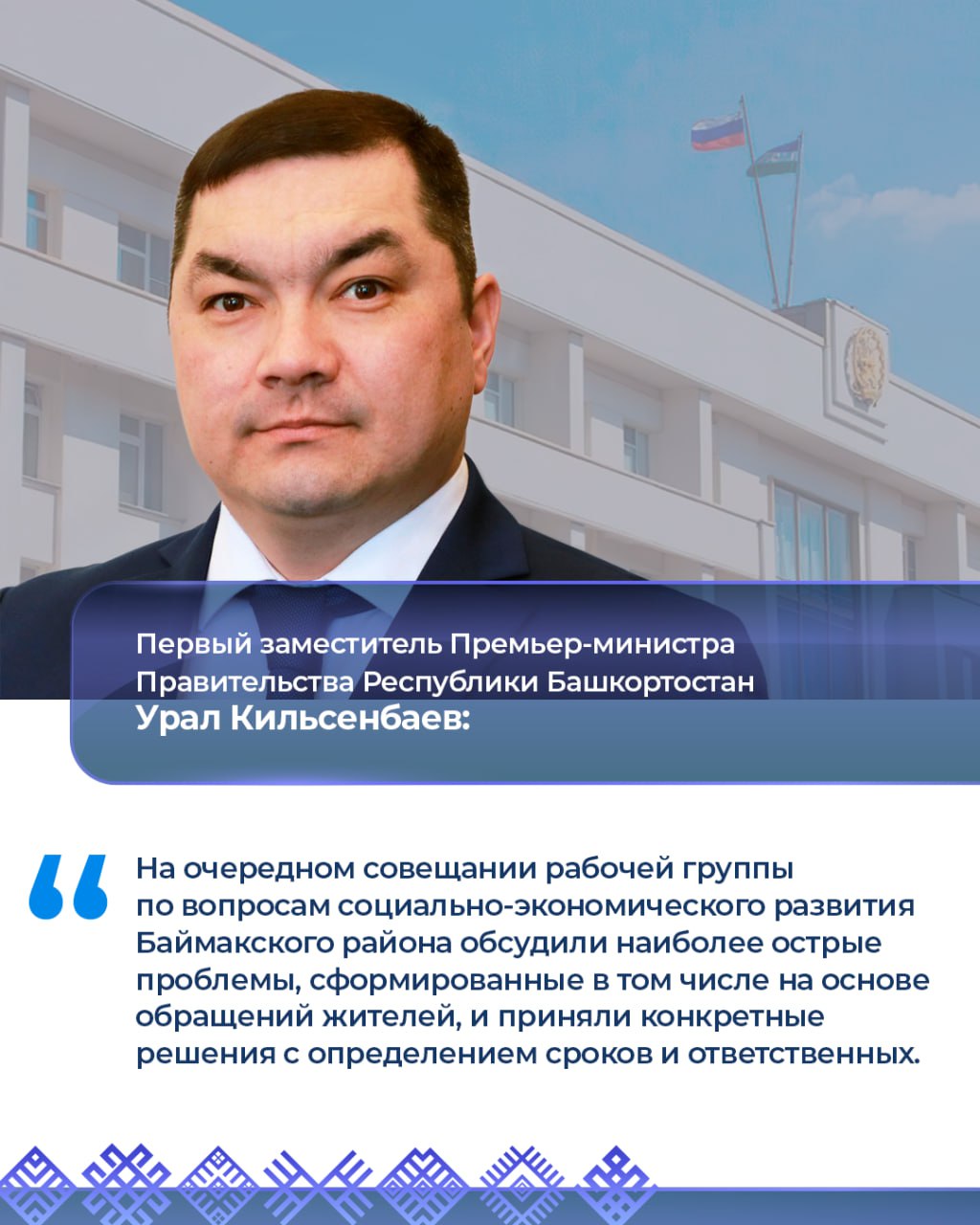 Первый заместитель Премьер-министра Правительства Республики Башкортостан Урал Кильсенбаев провел очередное рабочее совещание по вопросам социально-экономического развития Баймакского района.