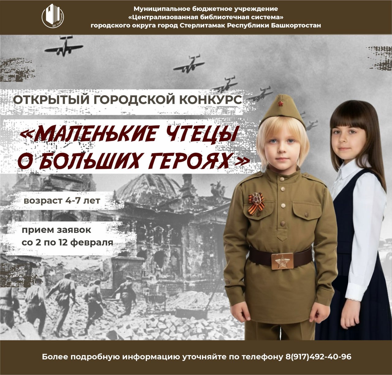 Библиотечная система Стерлитамака проводит Открытый городской конкурс чтецов «Маленькие чтецы о больших героях» для самых юных талантов.