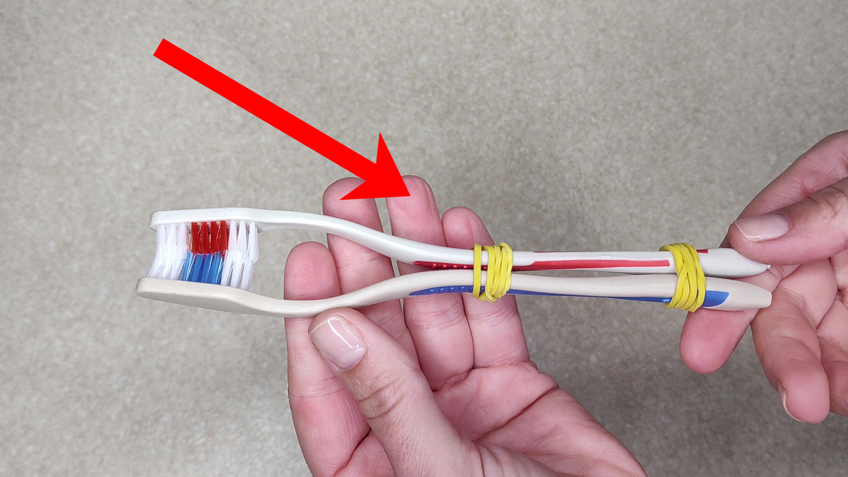 - Очистка расчески. Связав две зубные щётки канцелярскими резинками, можно легко избавиться от волос и загрязнений между зубчиками расчески.
