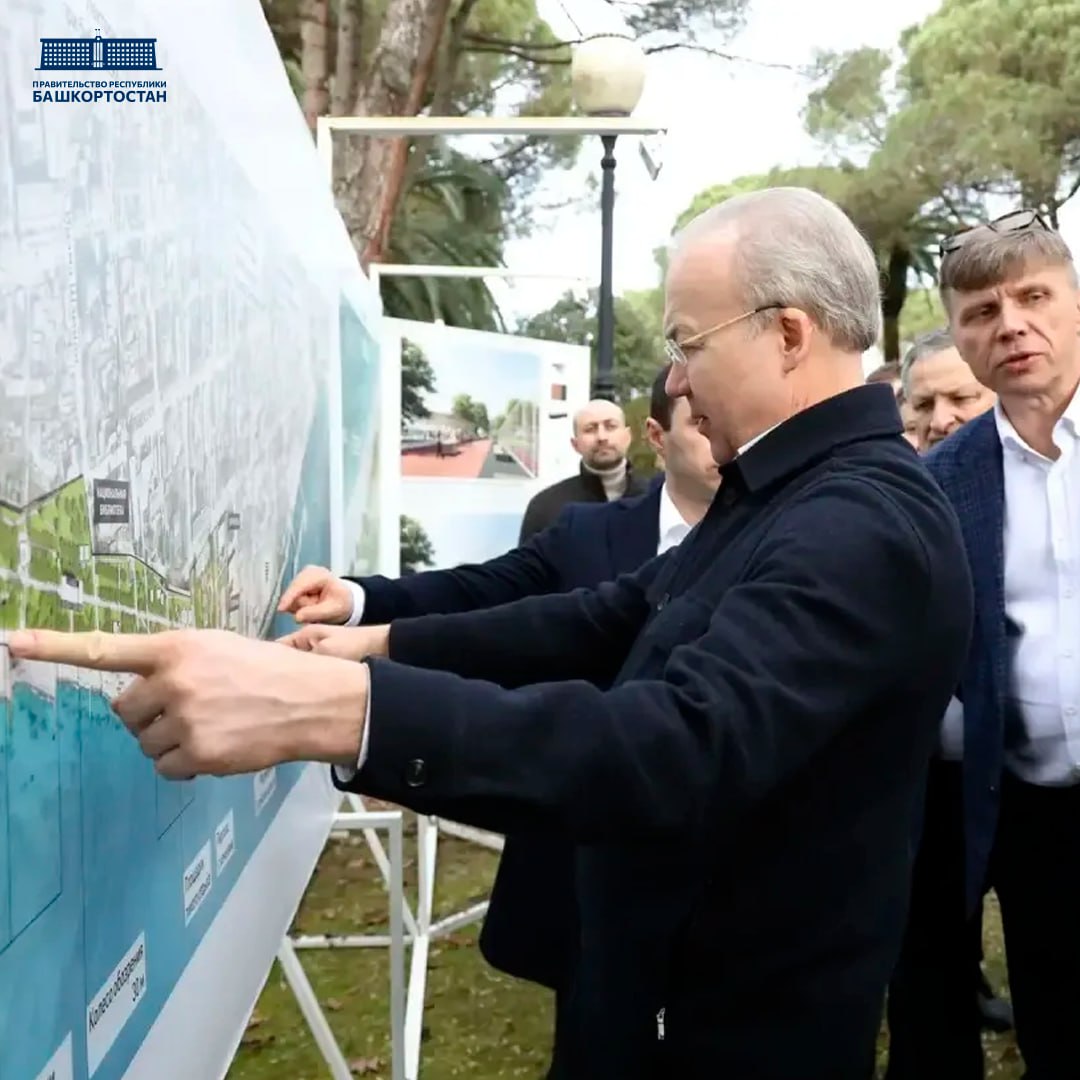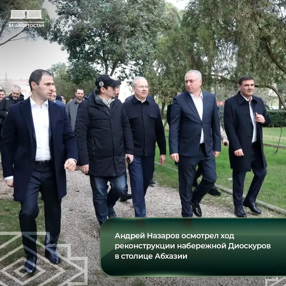 Премьер-министр Правительства Республики Башкортостан Андрей Назаров вместе с Президентом Республики Абхазия Бадрой Гунба и заместителем начальника Управления Администрации Президента РФ по общественным проектам Александром Журавским посетили набережную Диоскуров в Сухуме. Осмотр объекта состоялся в ходе рабочей поездки делегации российского региона в Республику Абхазия.