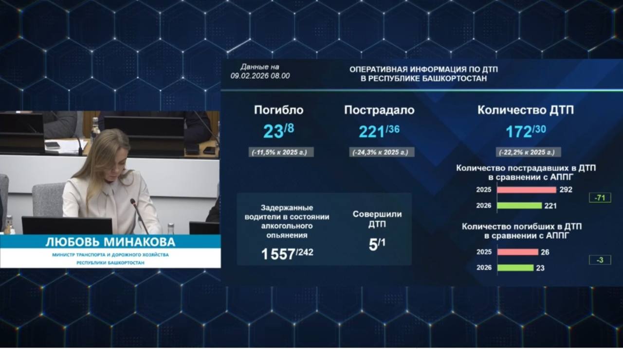 За неделю, с 2 по 8 февраля, на дорогах республики произошло 30 аварий. Об этом на оперативном совещании в правительстве РБ сообщила министр транспорта и дорожного хозяйства региона Любовь Минакова. Жертвами ДТП стали восемь человек. 36 человек пострадало.