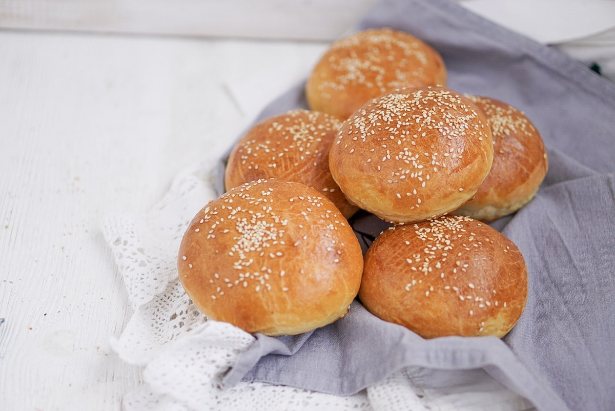 Сначала в глубокой миске смешивают яйца, молоко, сахар и дрожжи.Постепенно добавляйте муку, аккуратно перемешивая состав. Затем добавьте соль.Замешивайте тесто на низкой скорости в течение 7 минут. Далее, введите холодное сливочное масло, продолжая замешивание до получения однородной массы.Увеличьте скорость миксера и продолжайте мешать еще 15 минут общее время замески должно составить около 25 минут.Переложите тесто в смазанную растительным маслом емкость и равномерно распределите. Накройте пленкой и оставьте в холодильнике на 24 часа.Перед выпечкой подготовьте противень с пергаментной бумагой и установите на нем смазанные формы-кольца диаметров 10 см.Доставайте тесто и поделите его на 9 частей по 80 г. Сформируйте небольшие шарики. Уложите их в кольца и слегка прижмите, чтобы тесто растянулось до краев.Накройте пленкой и дайте расстояться в тепле в течение 2 часов.Перед выпечкой смажьте булочки льезоном из взбитого яйца и молока в равных пропорциях, при желании можно посыпать кунжутом.Выпекайте при температуре 175C в течение 15-17 минут, первые 4 минуты с паром, затем с конвекцией до золотистой корочки. Если выпекаете без конвекции, увеличьте время.Когда бриоши готовы, дайте им остыть на решетке, аккуратно снимите кольца и для улучшения текстуры положите в герметичный пакет на 1-2 дня. Ваши домашние рождественские угощения будут готовы!