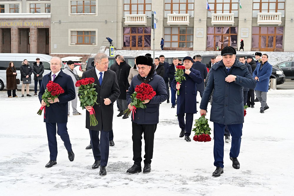 Сегодня в Уфе Глава республики Радий Хабиров и представители зарубежной делегации возложили цветы к памятнику Герою России, генерал-майору Минигали Шаймуратову.