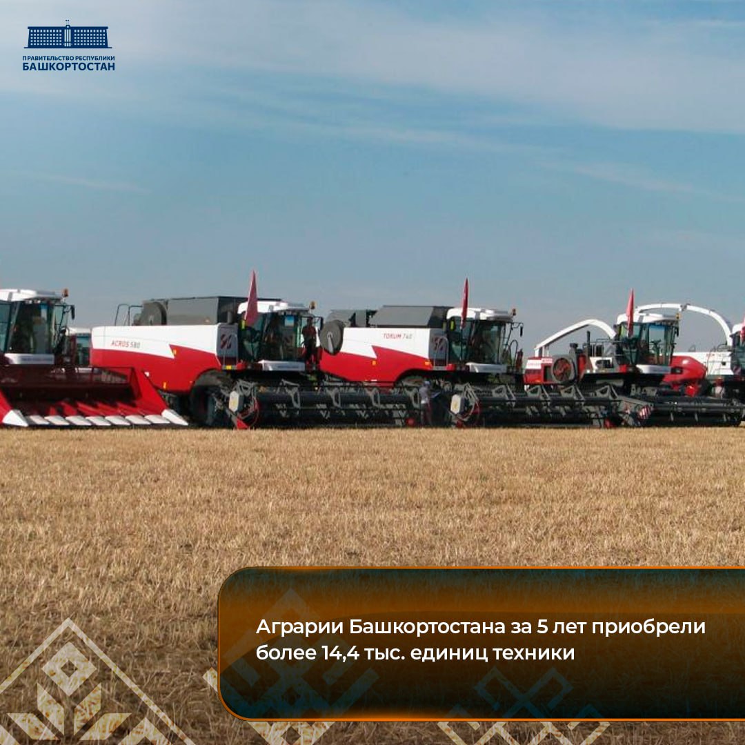 За 5 лет, начиная с 2021 года, сельхозпроизводители Республики Башкортостан закупили 14 442 единицы техники на 64,2 млрд рублей. Объем господдержки аграриев в рамках региональной программы технической модернизации АПК за эти годы составил 5,6 млрд рублей.