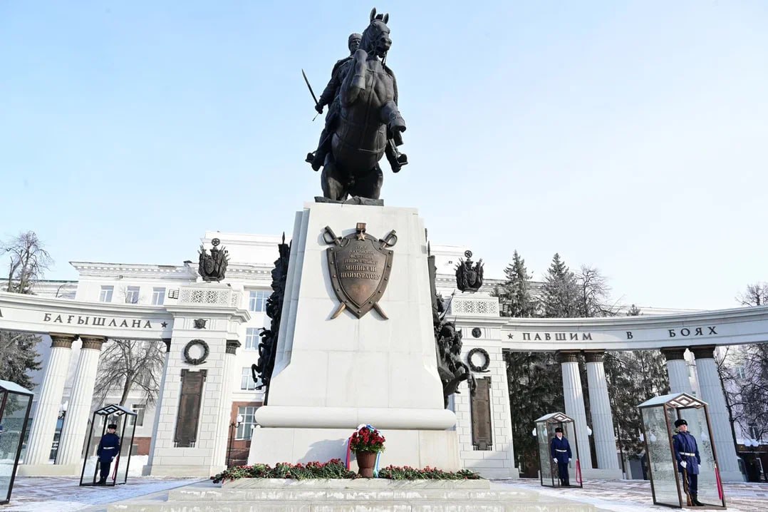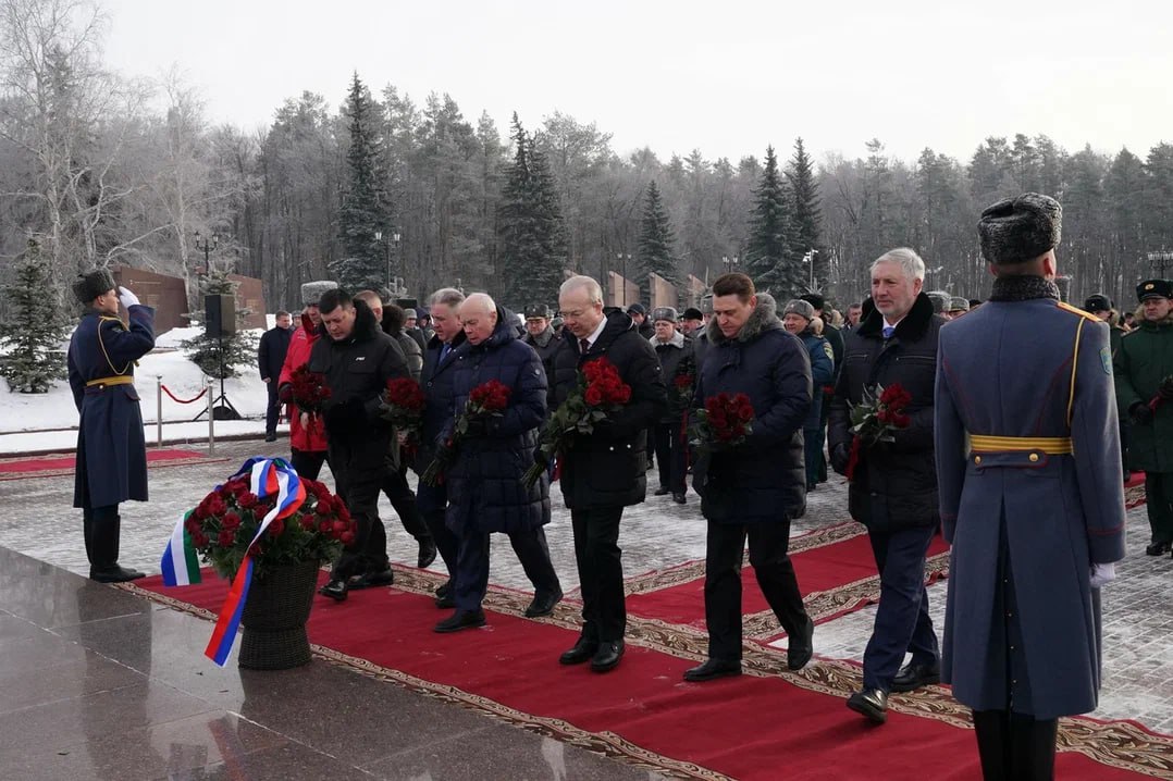 От имени многонационального народа Башкортостана Глава республики Радий Хабиров возложил цветы к памятнику, посвященному бессмертному подвигу Героев Советского Союза Александра Матросова и Миннигали Губайдуллина, у подножия которого горит Вечный огонь, и к памятнику Герою России, легендарному комдиву Минигали Шаймуратову