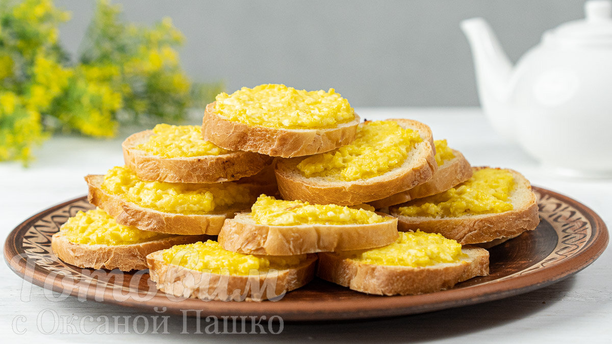 3. Подготовьте багет: Нарежьте французский багет на ломтики толщиной около 1 см. Если времени нет, можно приобрести уже нарезанный багет. Каждый кусочек обильно смажьте приготовленной творожной массой.