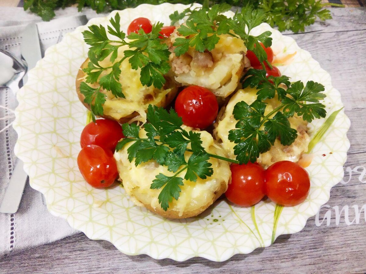 Запеченный в духовке картофель с аппетитной начинкой из фарша и сыра — это не только вкусное, но и сытное блюдо, которое станет настоящим украшением любого стола.