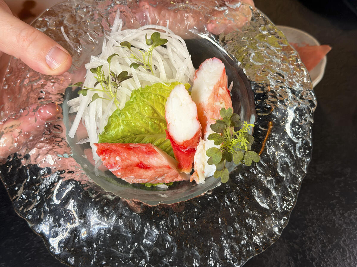 - Нигири из лосося и сашими из краба (25р) - хорошее качество, хотя цена, вероятно, вскоре возрастет.