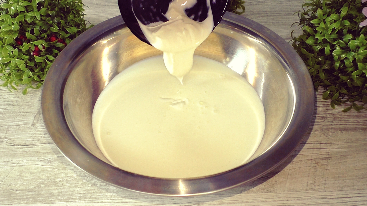 Подготовка теста проходит быстро и просто. В глубокой миске соединяются кефир и сметана, после чего добавляются желтки, растительное масло, соль и сахар. Затем следует тщательно перемешать всю массу.
