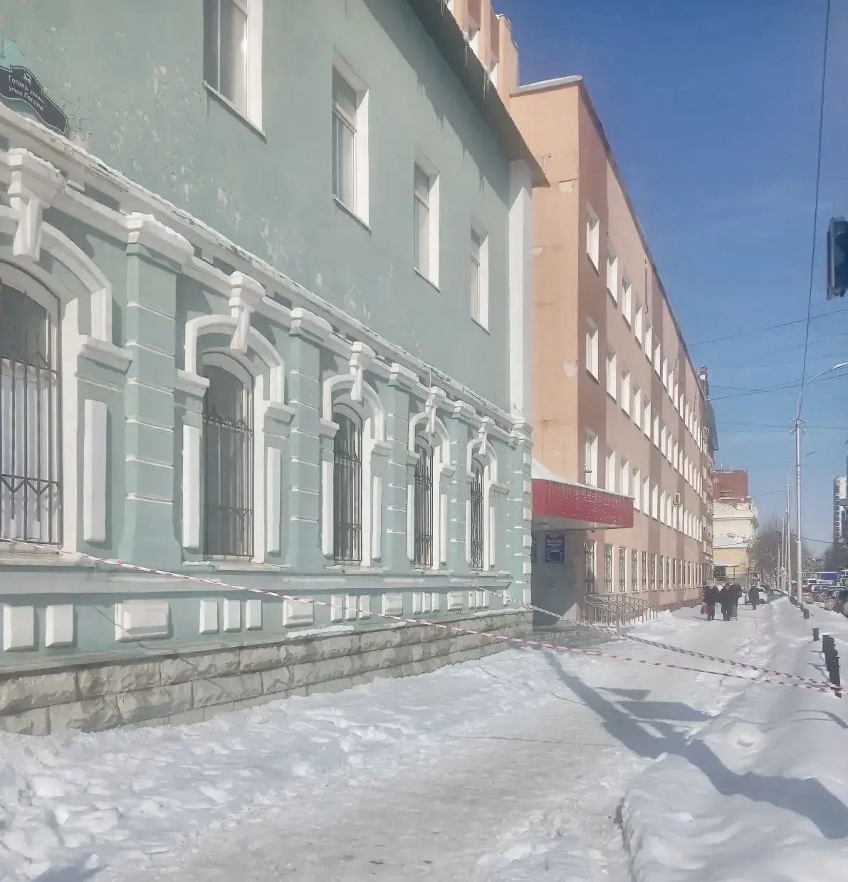Пенсионерка и девятилетняя школьница шли мимо здания на Коммунистической, когда с крыши сорвалась огромная куча снега. Обоих забрали в больницу, бабушку осматривают в приёмном покое.