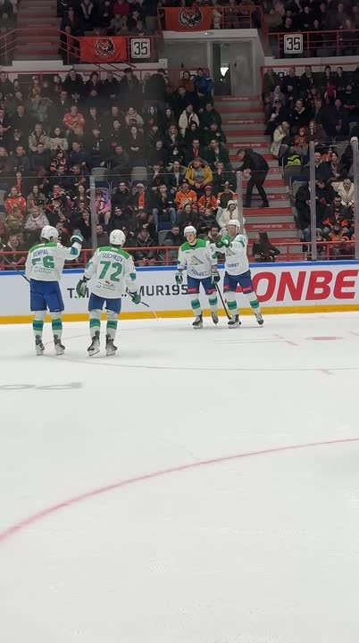 Пацаны играли в гостях, по шайбе забили Артём Пименов, Егор Сучков, Евгений Кузнецов и Девин Броссо. Эта заветная победа продвинула наших батыров в плей-офф.
