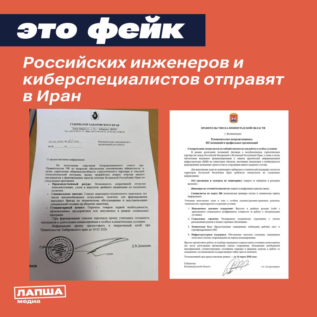 Вбросы на фоне конфликта на Ближнем Востоке начали эволюционировать. Поддельные письма о поиске добровольцев для решения боевых задач в Иране сменились документам о привлечении техспециалистов и работников IT-сферы.