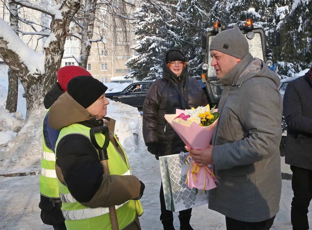 7 мартамэр Уфы Ратмир Мавлиев лично поздравил сотрудниц коммунальных служб города с наступающим праздником и поблагодарил их за ежедневный труд