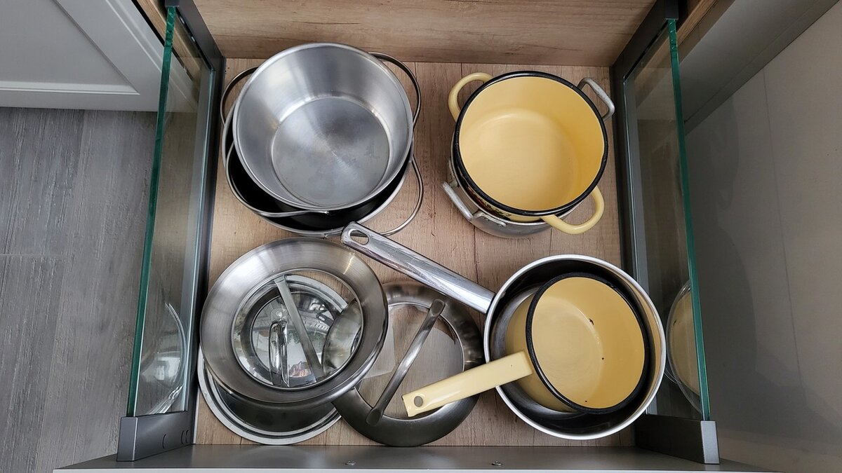 Вчера навестили сестру за чашечкой чая и неожиданно наткнулись на ее оригинальное решение для хранения крышек от кастрюль и сковородок. Всё утварь аккуратно расставлена, а крышки разбросаны по краям и сверху. Такой порядок стал возможен благодаря нескольким простым приёмам, доступным для каждого.