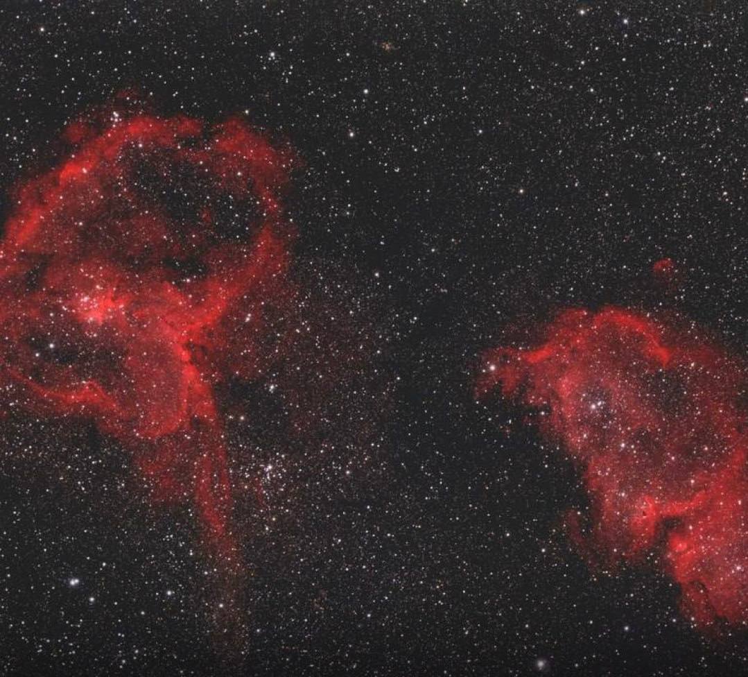 Среди них — туманности Тюльпан, Розетка, Ирис, а также огромные области звездообразования под названием Сердце и Душа. Некоторые из них растянулись на сотни световых лет.