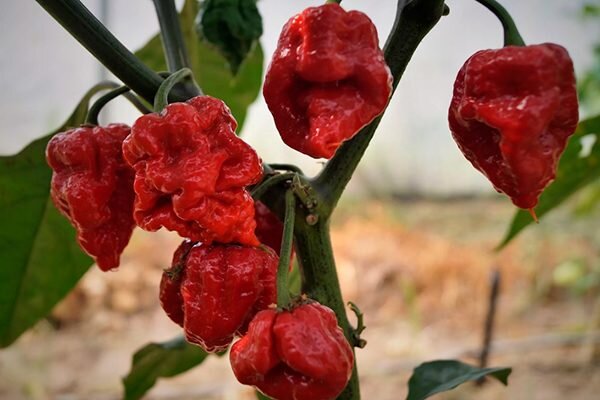 Стручки перца небольшие, достигающие лишь 1-2 см в длину, имеют бугристую и морщинистую поверхность, а некоторые даже оснащены крошечным хвостиком, знаменующим высокое содержание капсаицина. В плане остроты этот перец удивляет: на неофициальной шкале он набирает целых 2 480 000 единиц Сковилла, что делает его одним из самых острых в мире, даже обгоняющим ранее считавшийся рекордсменом – Каролинского жнеца.