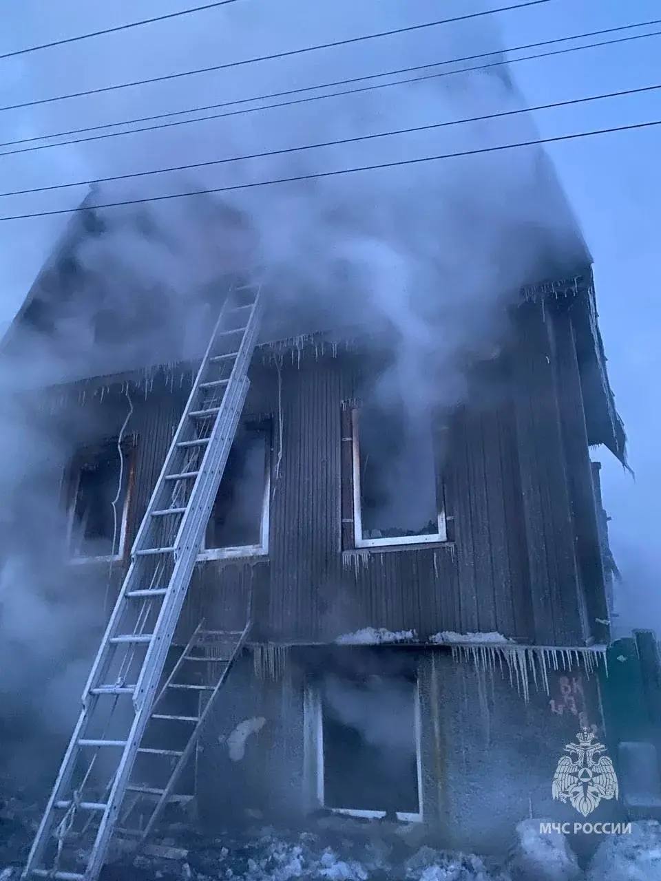 Огонь повредил двухэтажный бревенчатый жилой дом, баню и хозяйственные постройки. К тушению привлекались пожарно-спасательные подразделения МЧС.