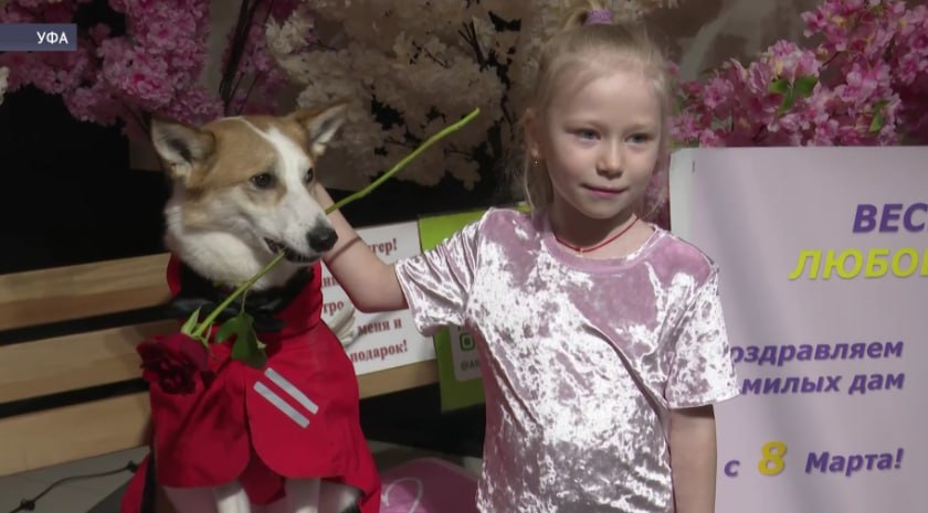 Собака по кличке Лэнгер поздравила жительниц Уфы с 8 Марта