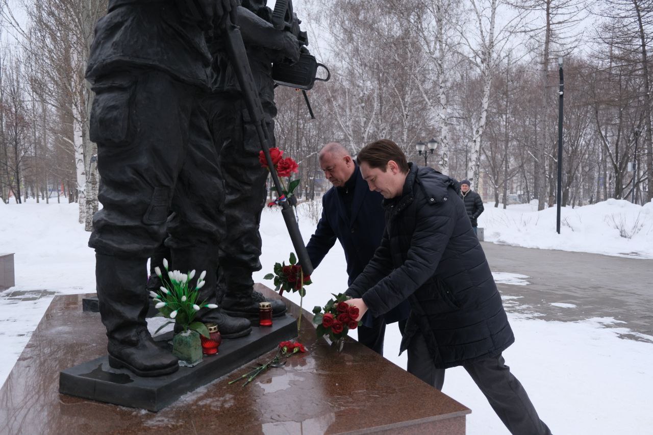 Также Ирек Хайривариевич Сагитов возложил цветы к мемориалу участникам СВО, почтив память погибших.