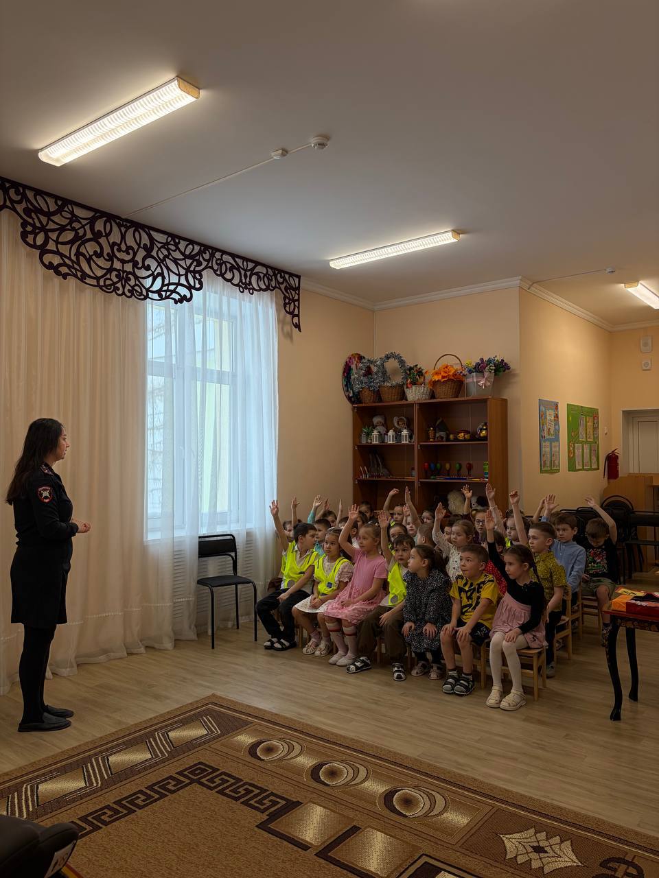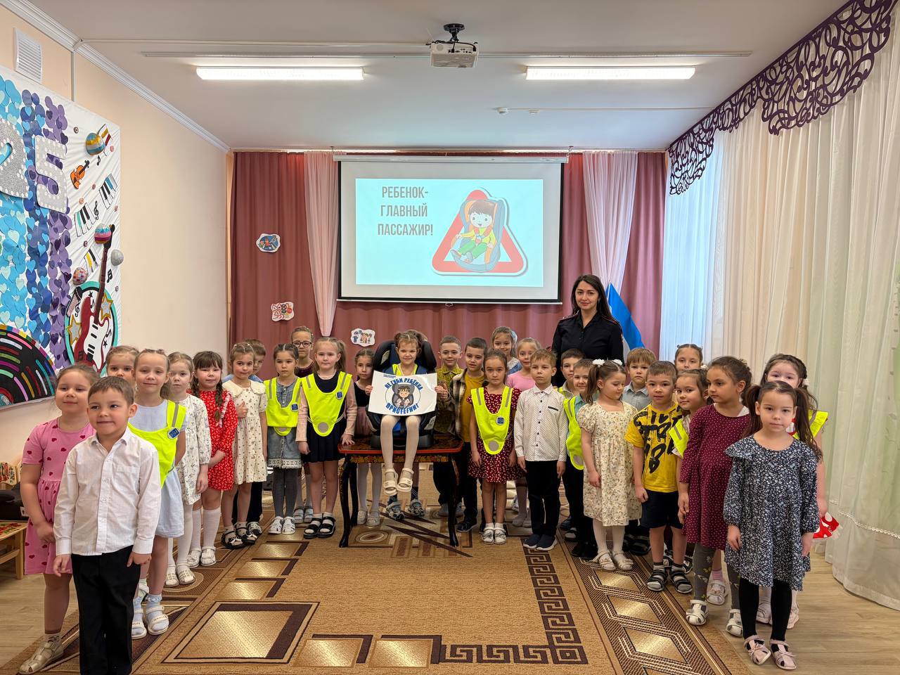 В тёплой, дружеской атмосфере с юными пассажирами повторили важные правила безопасной перевозки: где и как должен сидеть ребёнок в автомобиле, какие бывают автокресла по возрасту и росту, почему нельзя ездить на коленях у родителей.