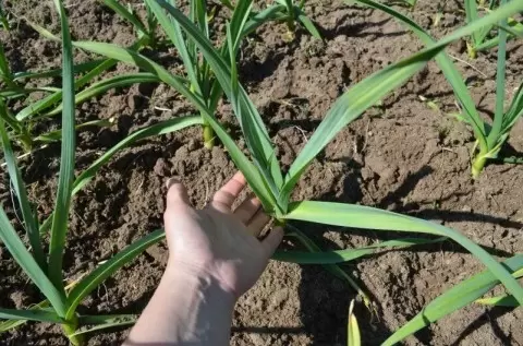 Недавно был проведен этап подкормки с использованием коровяка, так как у растения начали наблюдаться признаки недостатка питания из-за неблагоприятных климатических условий. Важно отметить, что если чеснок не желтеет, то вносить азотные удобрения в это время не нужно.