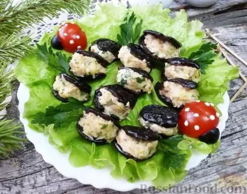 - Фаршированный чернослив: Это изысканная закуска, состоящая из чернослива, наполненного сливочным сыром, грецкими орехами и зеленью. Такой деликатес не только порадует глаз, но и станет настоящей находкой для любителей сладкого и соленого одновременно.